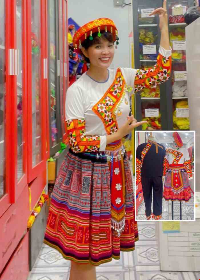 Trang phục dân tộc H’Mông / Mèo trắng tay dài phối thổ cẩm