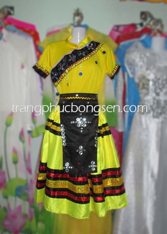 Trang phục dân tộc Mèo áo thun, váy phi phối thổ cẩm + khố đen kết đá