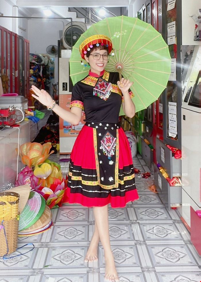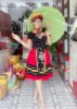 Trang phục dân tộc Mèo / H’Mông áo đen váy đỏ phối 2 ô vuông thổ cẩm