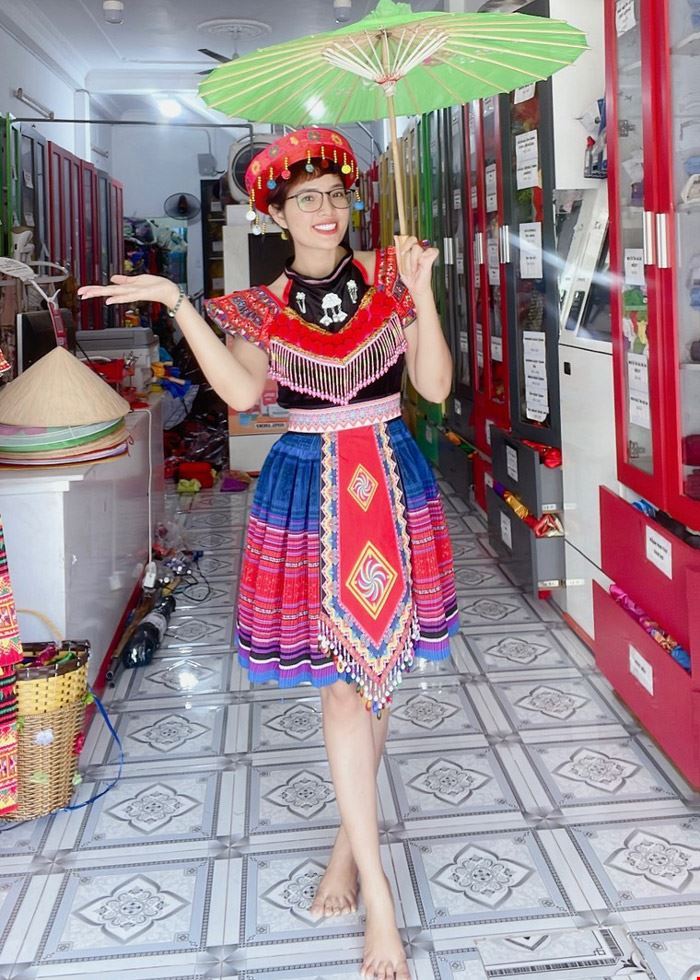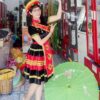 Trang phục dân tộc Mèo/H’Mông: áo nhung đen, tay cánh tiên, váy thổ cẩm