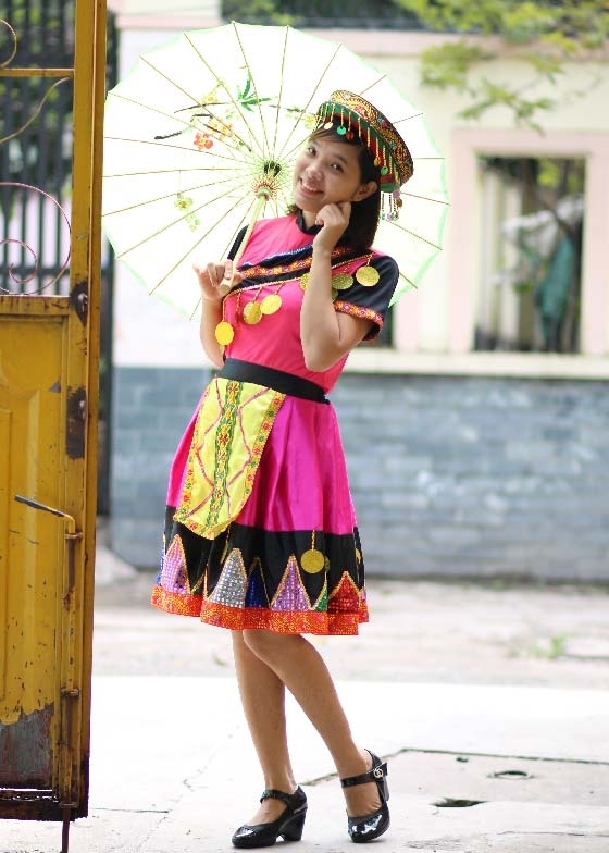 Trang phục dân tộc Mèo hồng váy hồng phối đen kim sa tam giác