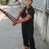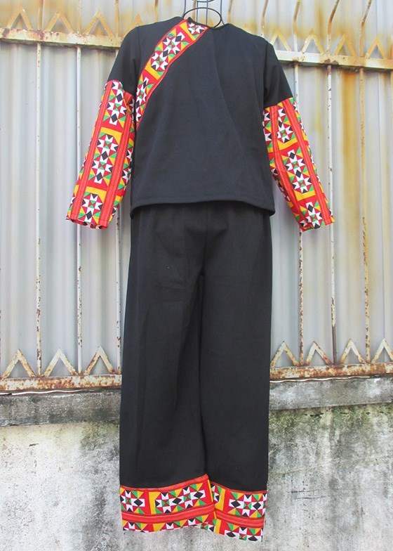 Trang phục dân tộc Mèo nam tiểu học màu đen phối thổ cẩm đỏ