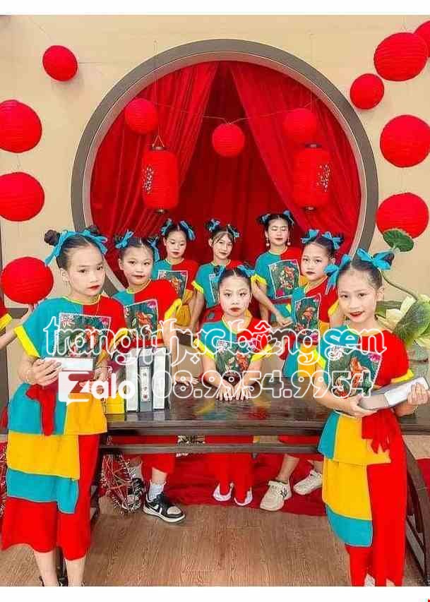 Trang phục đồng dao trẻ em nhiều tà đỏ-vàng-xanh