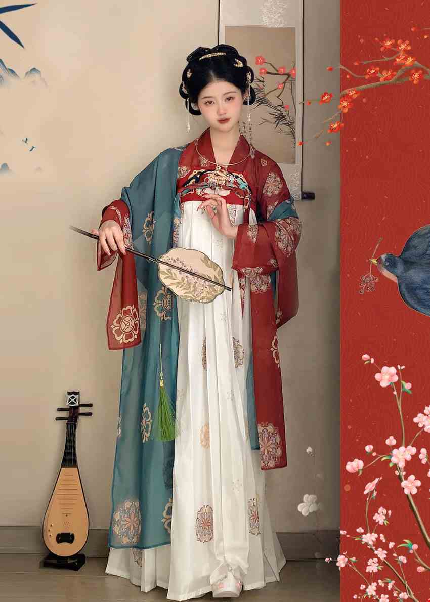 Trang phục Hằng Nga, cổ phục váy cúp ngực đỏ trắng