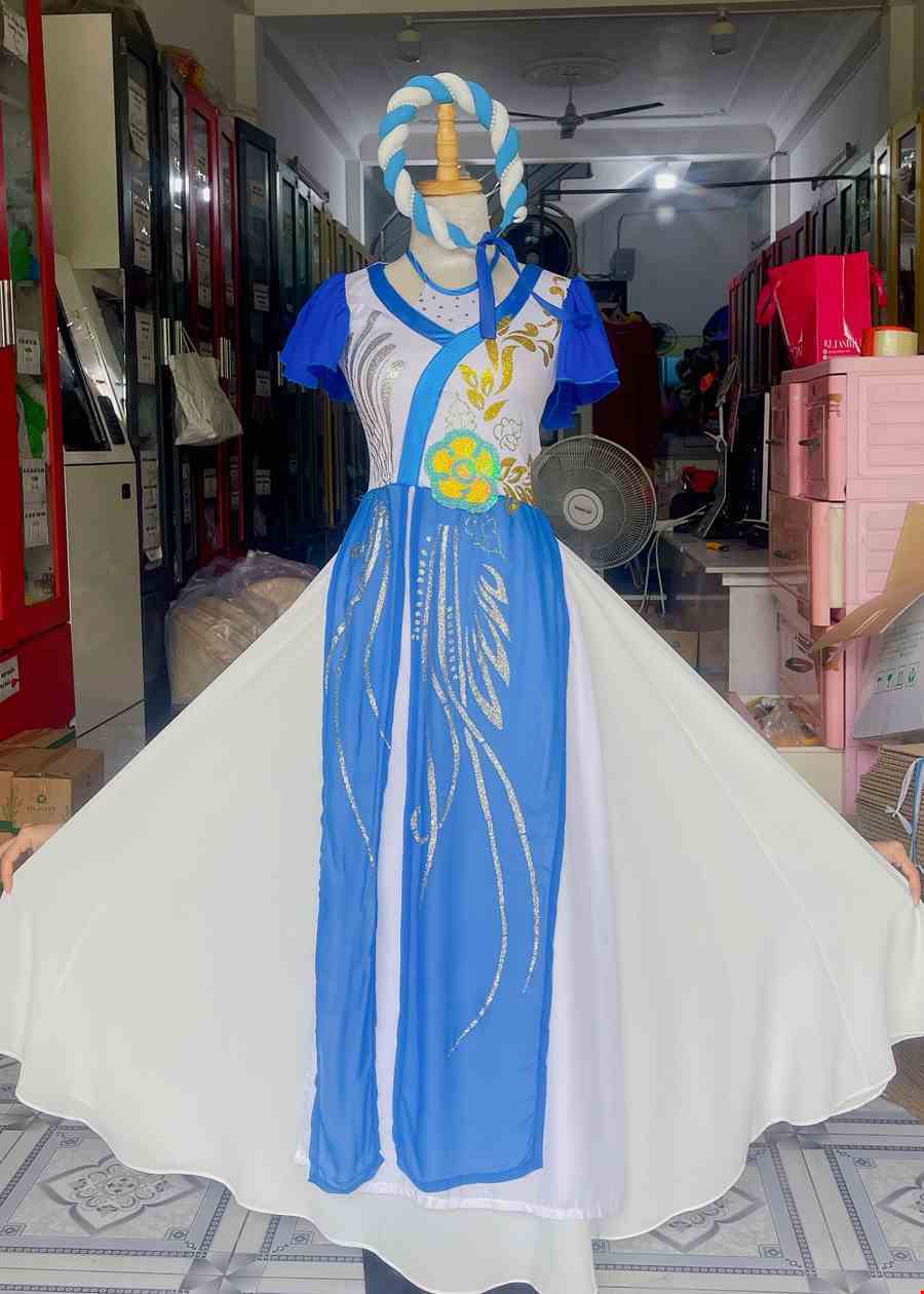 Trang phục hát múa áo dài trắng xanh dương nhiều tà tay cánh tiên