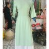 Trang phục múa hát basic áo dài lụa màu xanh cổ vịt phối quần váy trắng
