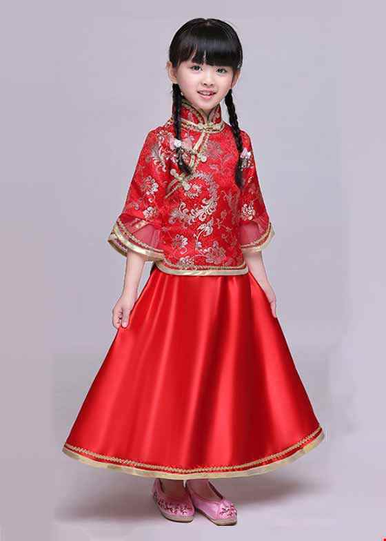 Trang phục sườn xám nữ mầm non vải gấm
