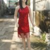 Trang phục Tây Nguyên – Áo váy nhung đỏ sát nách họa tiết kim tuyến ô vuông