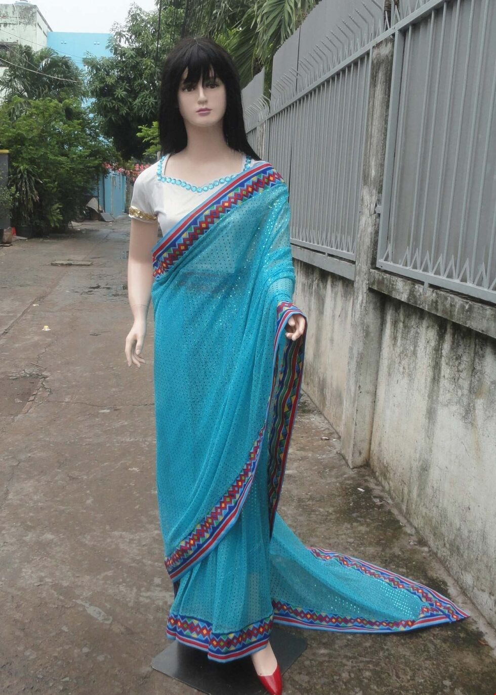 Trang phục truyền thống Ấn Độ kim sa hột xanh biển