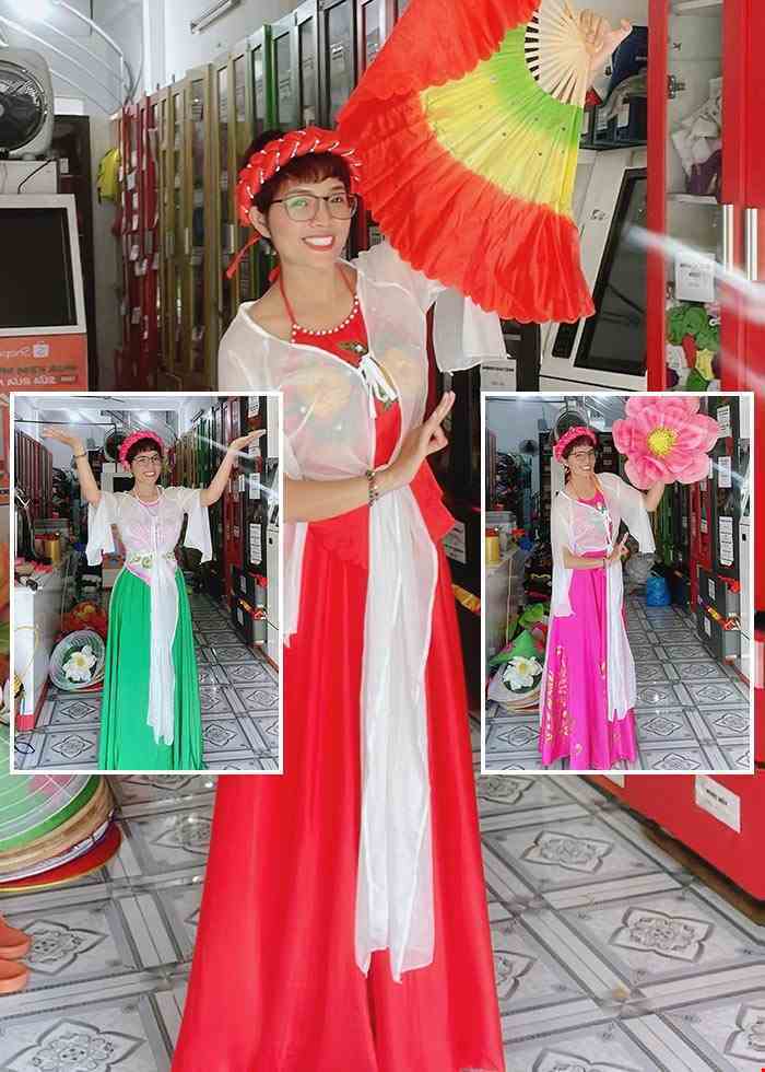 Gồm: áo tứ thân lụa, yếm, chân váy, mấn