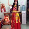 Trang phục tứ thân tà vẽ tay xẻ màu hồng
