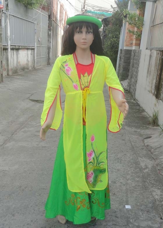 Tứ thân trẻ em màu vàng vẽ sen tay xẻ