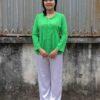 Tứ thân vải voan màu xanh chuối – vàng