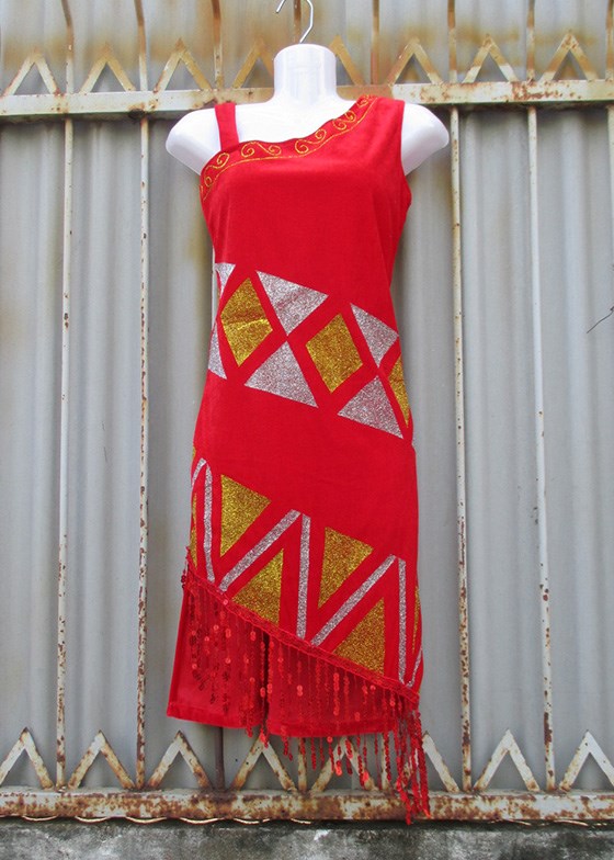 Váy Tây Nguyên nữ chéo vai, tà xéo màu đỏ