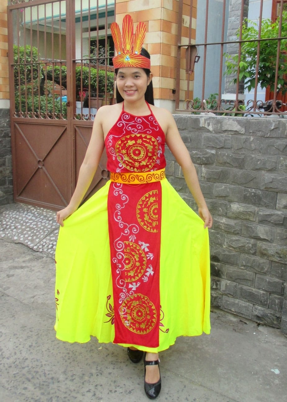 Gồm áo yếm, váy đụp dài, đai và nón.