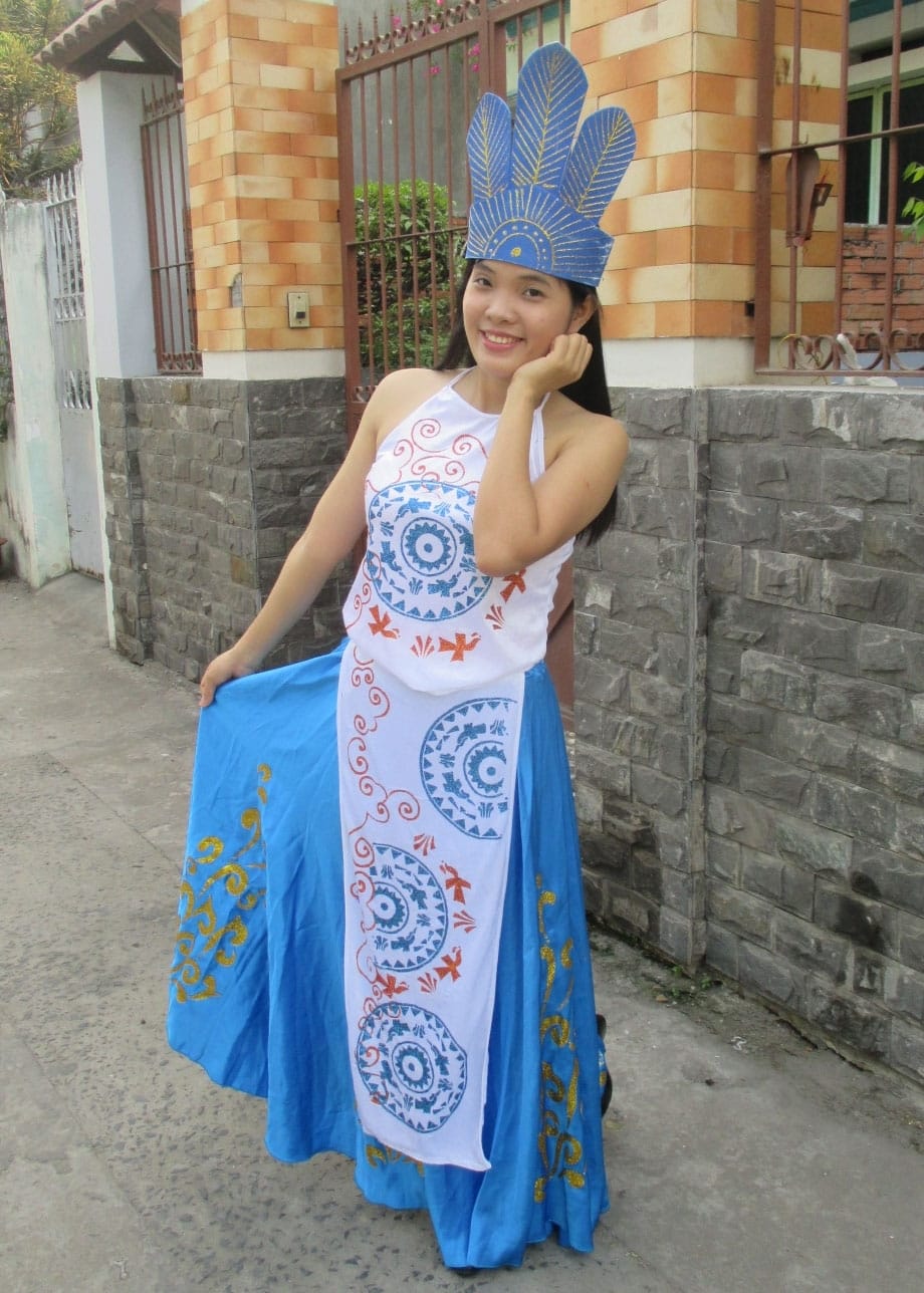 Gồm áo yếm, váy đụp dài, đai và nón.