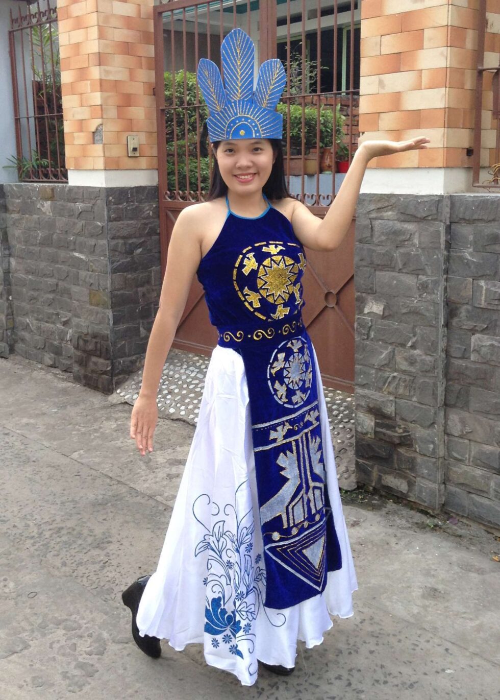 Gồm áo yếm, váy đụp dài, đai và nón.