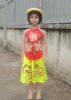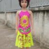 Yếm mầm non đỏ 3 hoa, váy đụp vàng