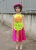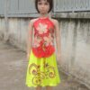 Yếm mầm non vàng vẽ hoa hồng, váy đụp hồng