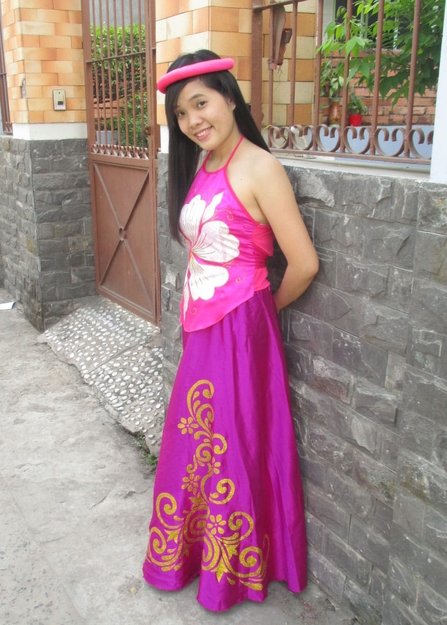Yếm phun màu hồng hoa trắng, đụp dài
