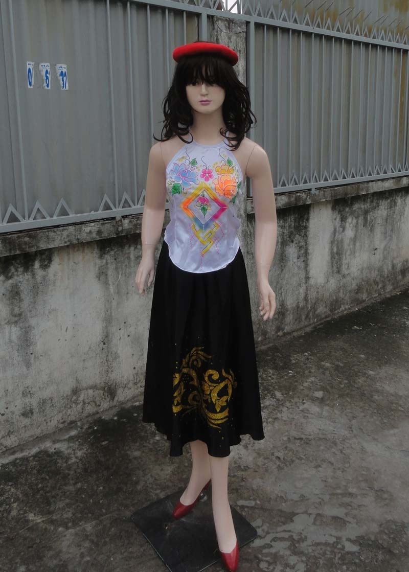 Yếm trắng phun hoa ô vuông, đụp đen dài
